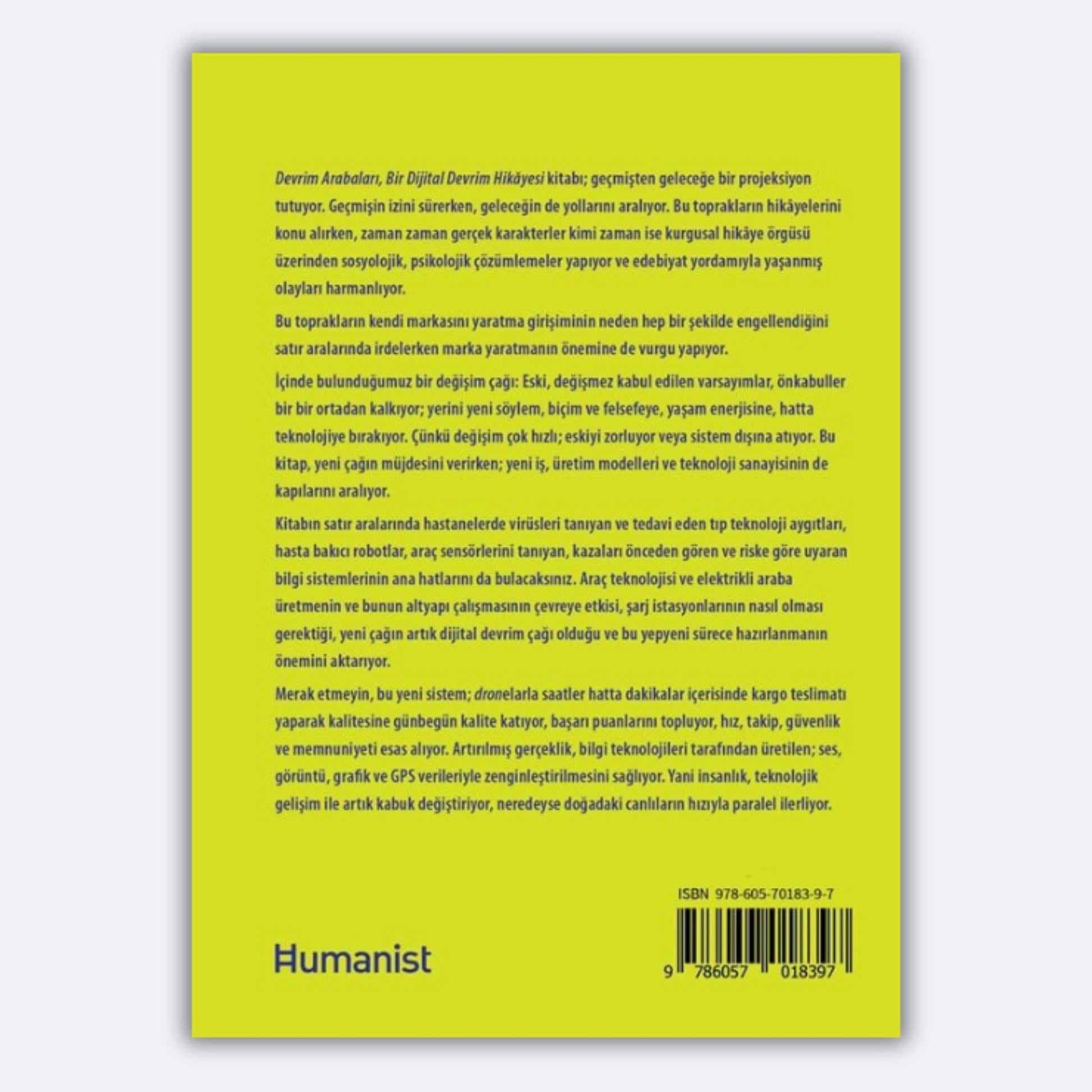 Devrim Arabaları, Bir Dijital Devrim Hikâyesi kitabı, geçmişten geleceğe bir projeksiyon tutuyor. Geçmişin izini sürerken, geleceğin de yollarını aralıyor. Bu toprakların hikâyelerini konu alırken, zaman zaman gerçek karakterler kimi zaman ise kurgusal hikâye örgüsü üzerinden sosyolojik, psikolojik çözümlemeler yapıyor ve edebiyat yordamıyla yaşanmış olayları harmanlıyor. Bu toprakların kendi markasını yaratma girişiminin neden hep bir şekilde engellendiğini satır aralarında irdelerken marka yaratmanın önemine de vurgu yapıyor.
